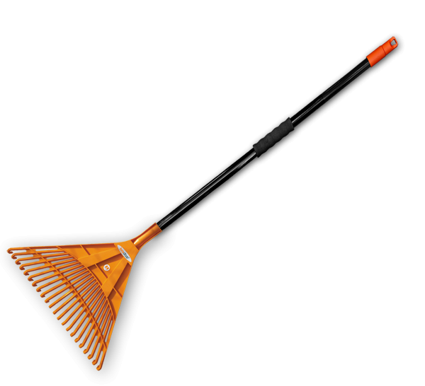 Віялові садові граблі, 22 зубці з високоякісного пластику. Мають різьбове гніздо, яке дозволяє просто та надійно встановити металевий держак. М’яка накладка на держаку для комфортної роботи.