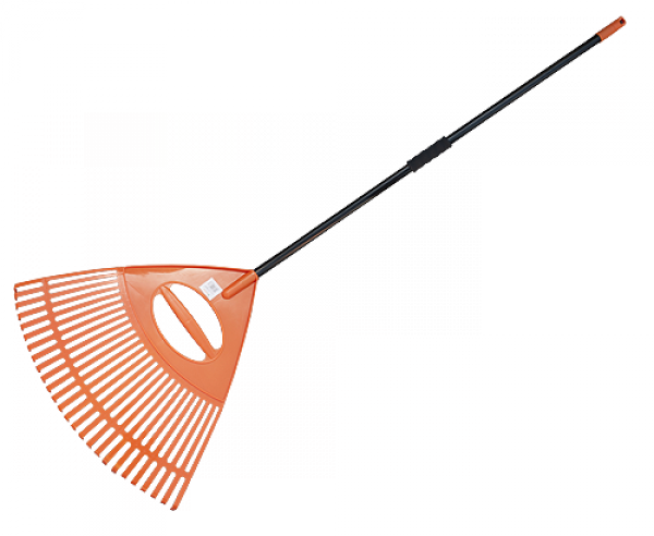 Широкі віялові садові граблі, 26 зубці з високоякісного пластику. Мають різьбове гніздо, яке дозволяє просто та надійно встановити лакований дерев’яний держак.