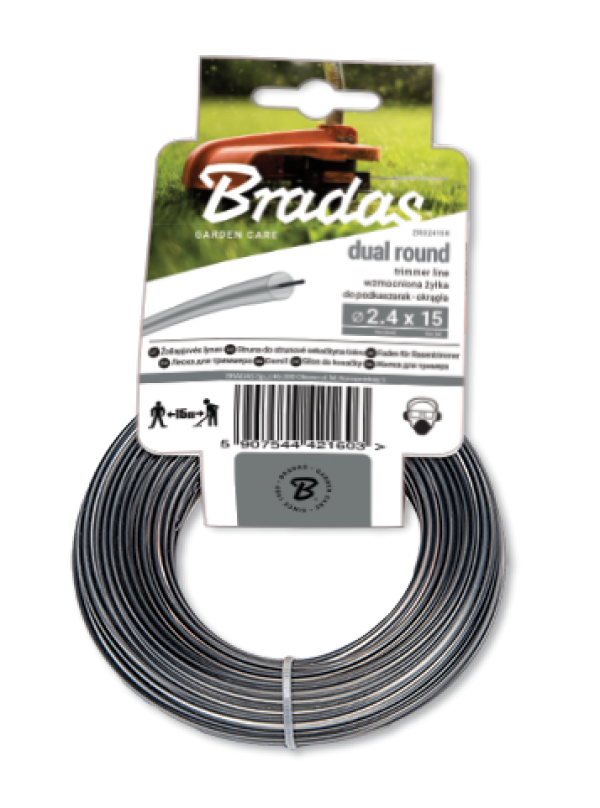 Двокомпонентна нейлонова волосінь до тримера з армувальним сердечником. Має круглий перетин, завдяки чому добре справляється зі скошуванням майже всіх видів рослинності. Є більш зручною у використанні, бо добре укладається у котушку, більш економно витрачається.