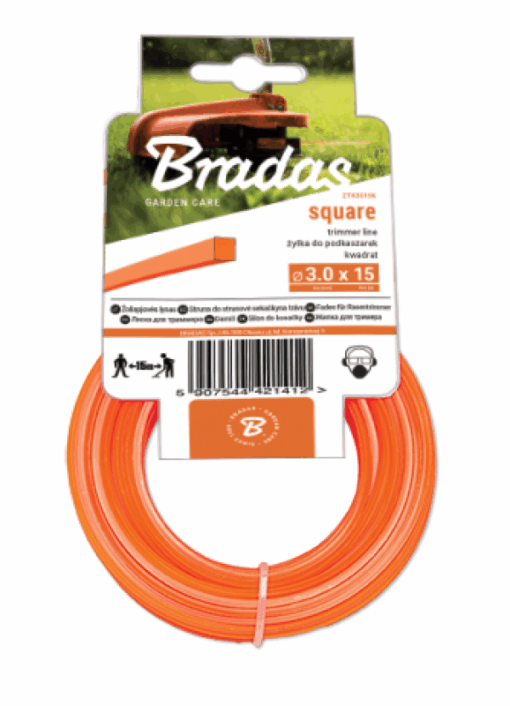 Нейлонова волосінь до тримера з чотирикутним перетином (квадрат). Має високу різальну здатність завдяки гострим граням. Підходить для скошування густих заростей перестиглої грубої трави, добре справляється зі скошуванням високої сухої трави, товстостеблих рослин та молодої порослі кущів.