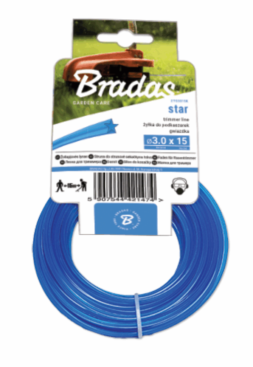 Нейлонова волосінь до тримера з п’ятикутним перетином (зірка). Має високу різальну здатність завдяки гострим граням. Підходить для скошування як м’якої молодої, так і густих заростей перестиглої грубої трави, добре справляється зі скошуванням сухої трави, товстостеблих рослин та молодої порослі кущів.