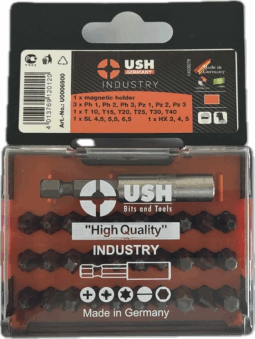Набір насадок викруткових Industry USH: 1/4″ з магнітним тримачем, PH, PZ, SL, Tx, HEX, 31 ел