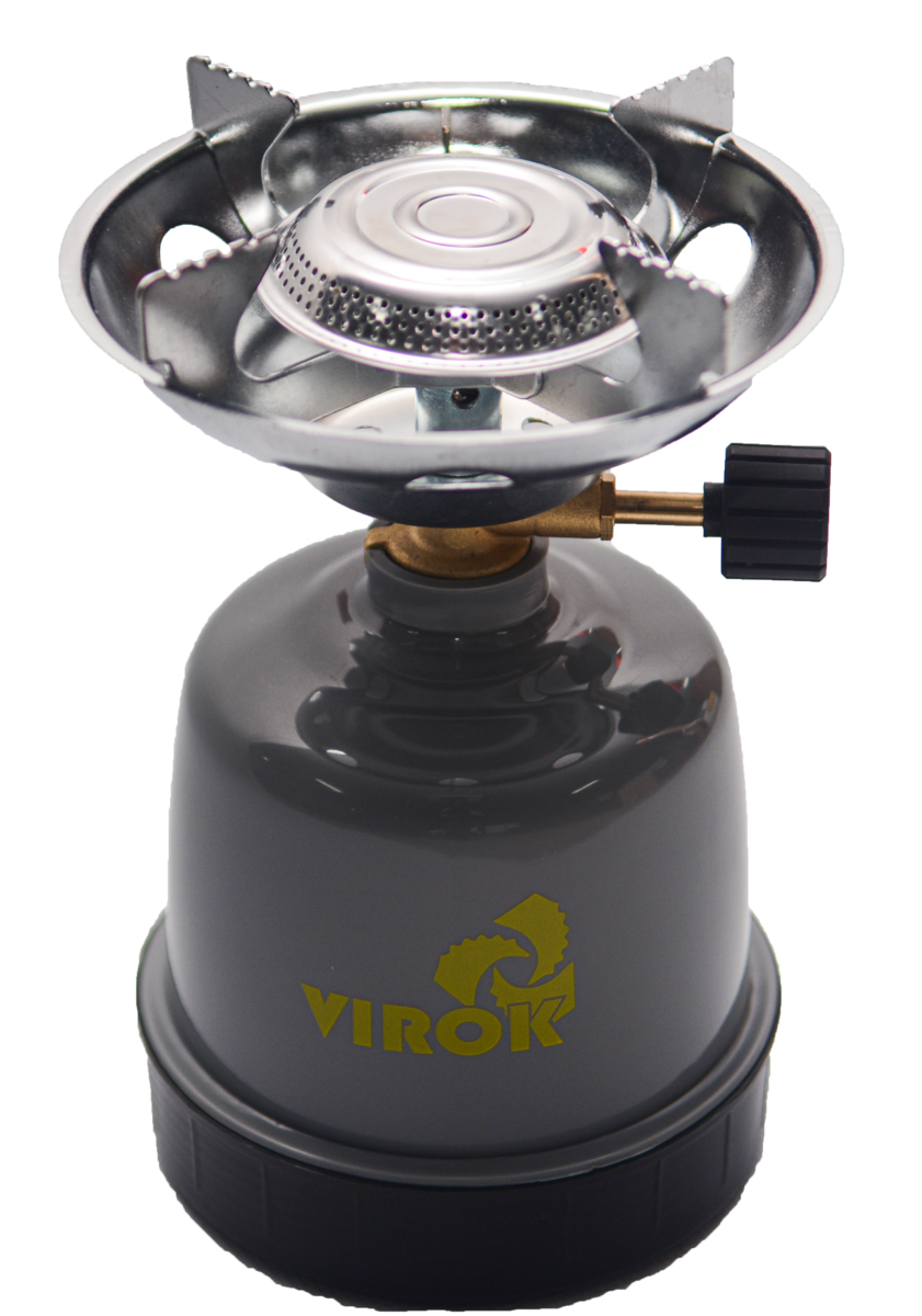 Газовий туристичний примус Virok 190 г під балон з п’єзопідпалом призначений для туристичних походів і допоможе в приготуванні їжі, розморожуванні.