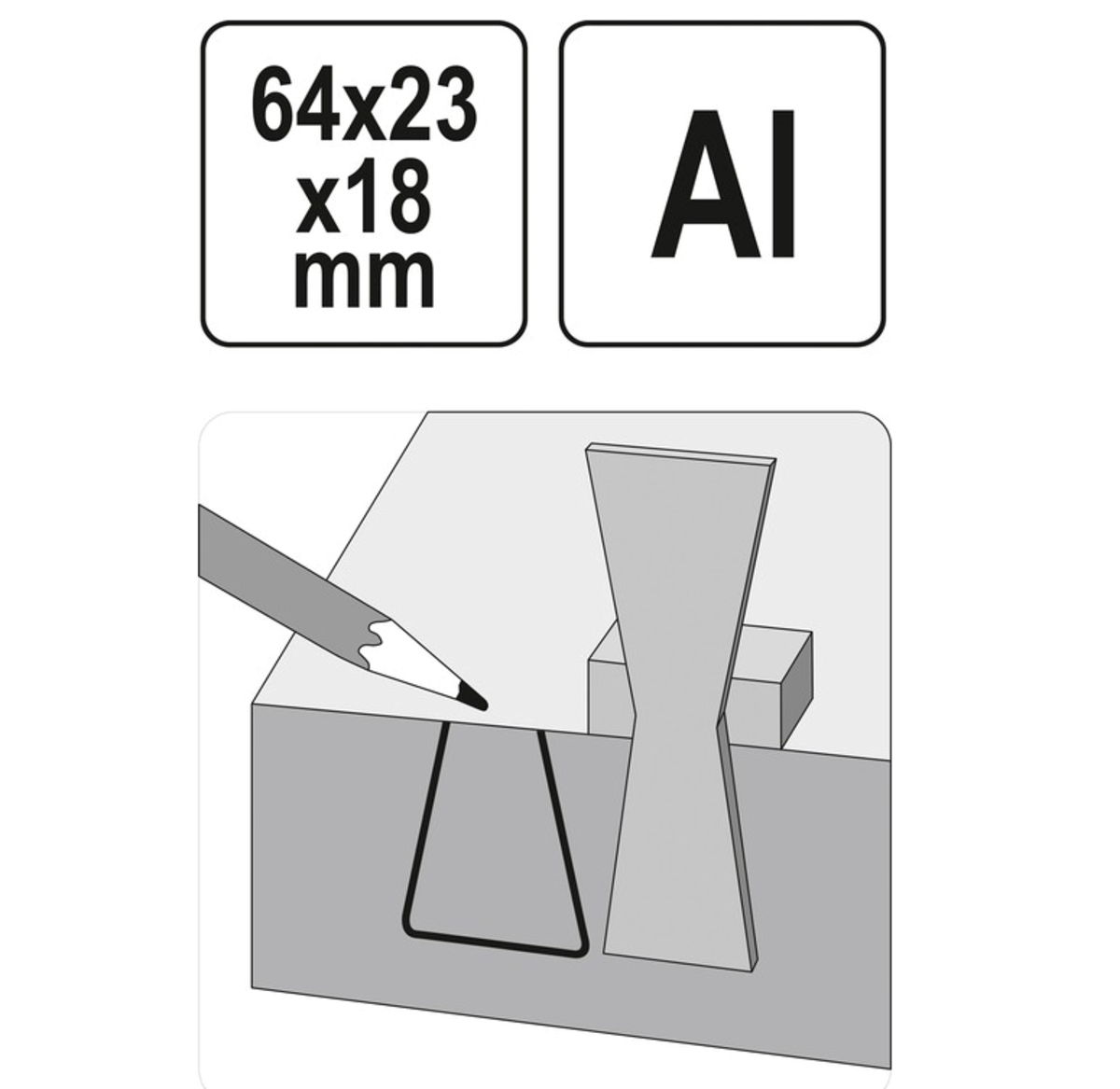 Шаблон розмічальний YATO контур “ластівковий хвіст” зі шкалою, 64х 23х 18 мм [50]