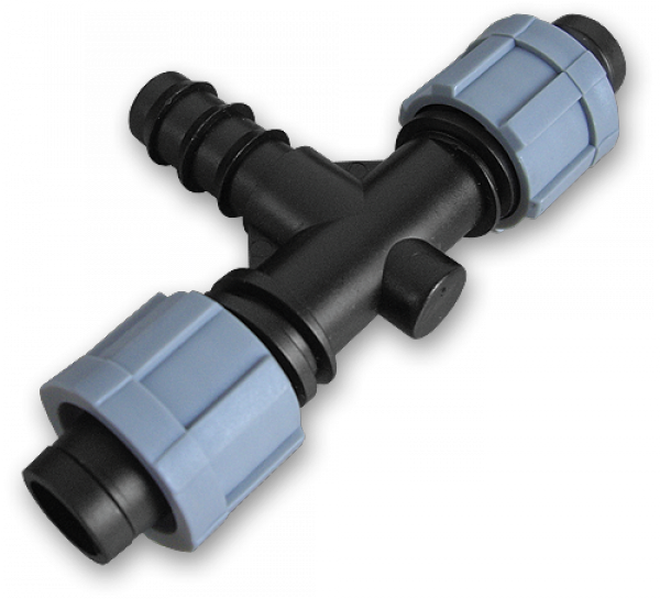 Трійник для прямого з’єднання крапельної стрічки та перпендикулярного під’єднання трубки 16 мм.