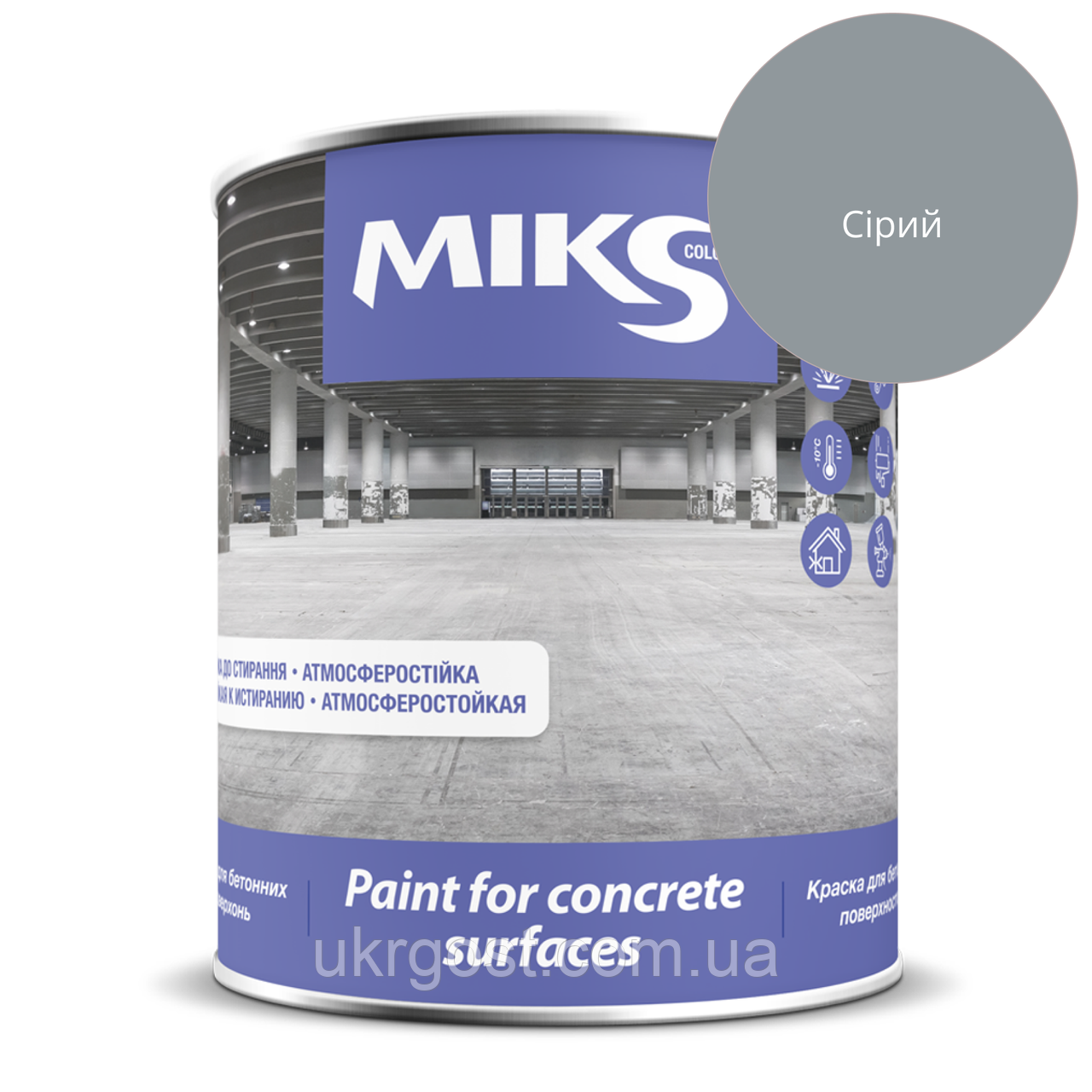 Краска для бетонных поверхностей Miks Серый мат 2,5 кг