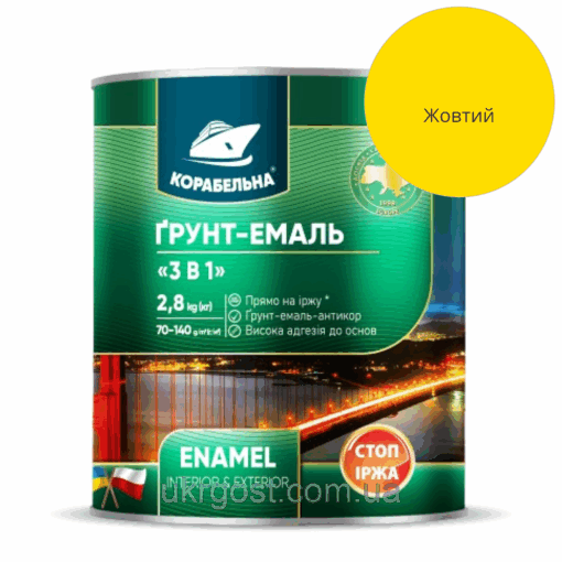 Грунт-эмаль 3в1 по металлу Корабельная Желтый полуглянец 0,9 кг
