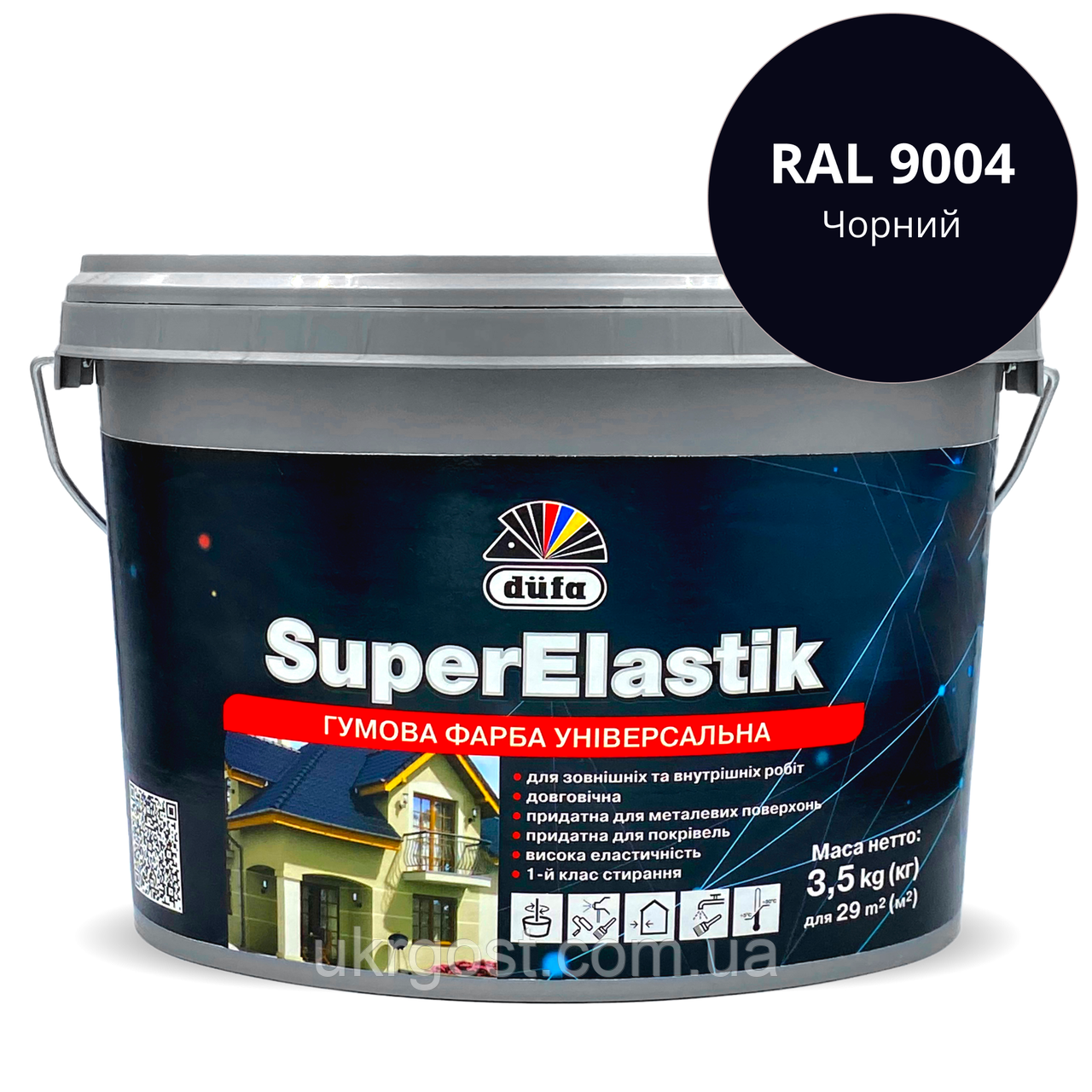 Резиновая краска универсальная Dufa SuperElastik RAL 9004 Черный мат 3,5 кг